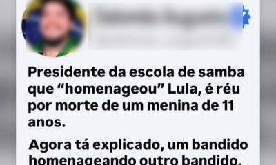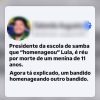 O presidente da escola de samba que homenageou Lula é réu por morte de uma criança?