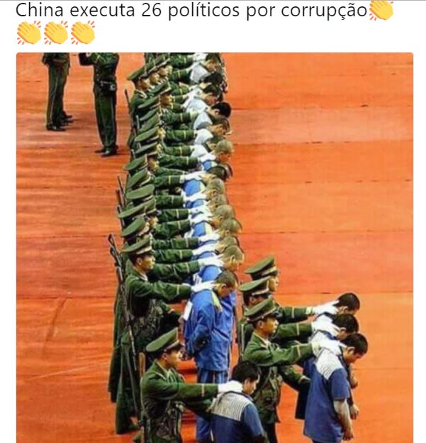 Notícia espalhada através das redes sociais afirma que a China executou 26 políticos acusados de corrupção! Será que essa história é verdadeira ou falsa? Descubra aqui!