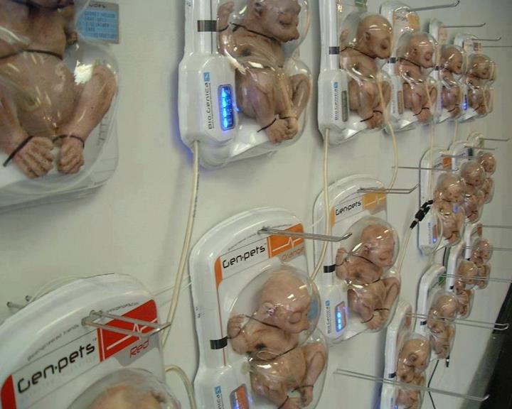 A notícia ainda diz que os brinquedos permanecem vivos dentro das embalagens e à espera de serem comprados graças a um nutriente – que é inserido no animal por um tubo. Tal embalagem funcionaria como um útero artificial, que mantém os genpets vivos por vários anos nas gôndolas das lojas.