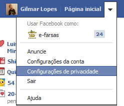 Clique no menu da página inicial em “Configurações de Privacidade”