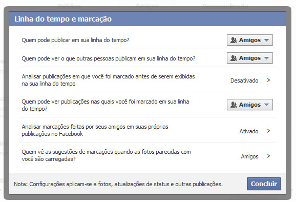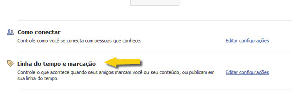 Você também pode alterar as condições de privacidade em sua linha do tempo clicando nessa mesma tela no item “Linha do tempo e marcação“:
