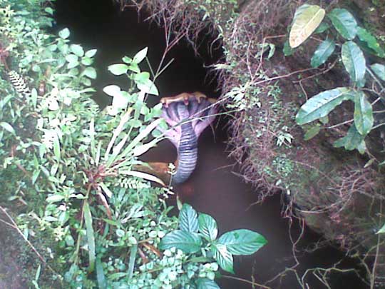 Nas versões em inglês, as fotos vêm acompanhadas de textos que afirmam que a tal cobra mutante teria sido encontrada em Kukke Subramanya, Karnataka, na India.