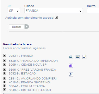 9 Agências do Banco do Brasil encontradas em Franca (reprodução: site do Banco do Brasil)