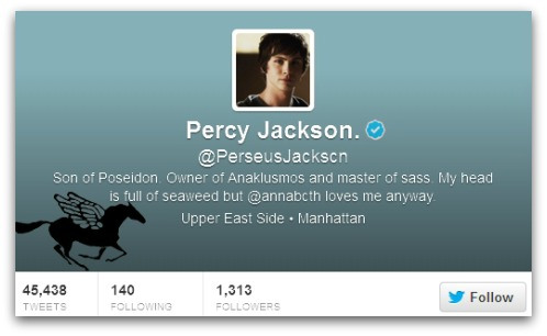 Já que é muito complicado se conseguir um OK do Twitter, alguns usuários começaram a forjar sua conta. Foi o caso do twitteiro que usou o nome do personagem da ficção Percy Jackson.