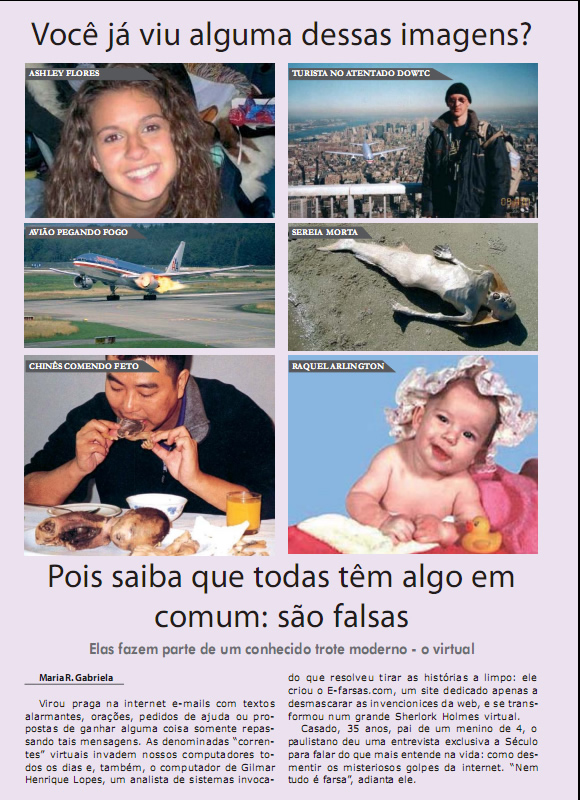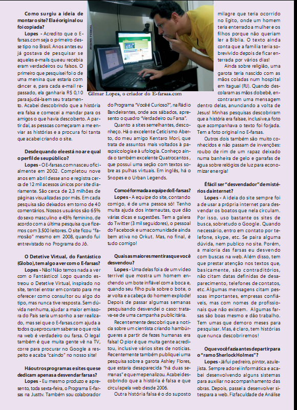 Em agosto de 2011, a edição numero 67 da revista Século entrevistou o responsável pelo E-farsas.com, o pesquisador Gilmar Lopes.