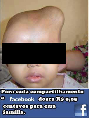 Nos primeiro dias de julho de 2012, a foto abaixo começou a ser compartilhada no Facebook. De acordo com o texto que a acompanha, para cada compartilhamento feito, a criança será ajudada em R$ 0,05 pelo Facebook em seu tratamento.