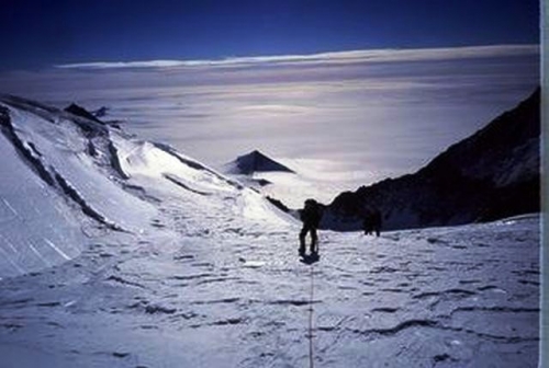 As imagens que acompanham a notícia não tem nada a ver com pirâmides encontradas na Antártica. Uma rápida busca pela web e descobrimos que as fotos foram tiradas em dezembro de 2010, por uma equipe de alpinistas liderada por Phil Ershler, que escalou um monte a 12.500 pés de atitude. A figura piramidal que vemos nas fotos nada mais é do que o topo de uma montanha!