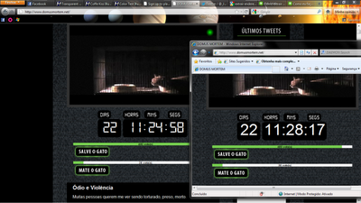 Outros leitores também começaram a investigar o site e encontraram diversas falhas no Domus Mortem. O blog Poison Express mostrou que o relógio com a contagem regressiva do site não é linear. Veja no print do Domus Mortem abaixo que no mesmo instante os dois navegadores mostram tempos diferentes.