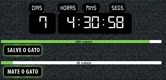 Um relógio marca o tempo restante para o final da votação. Quando visitamos o site (dia 26 de junho de 2011), o relógio marcava que faltavam apenas 7 dias para o término do jogo.