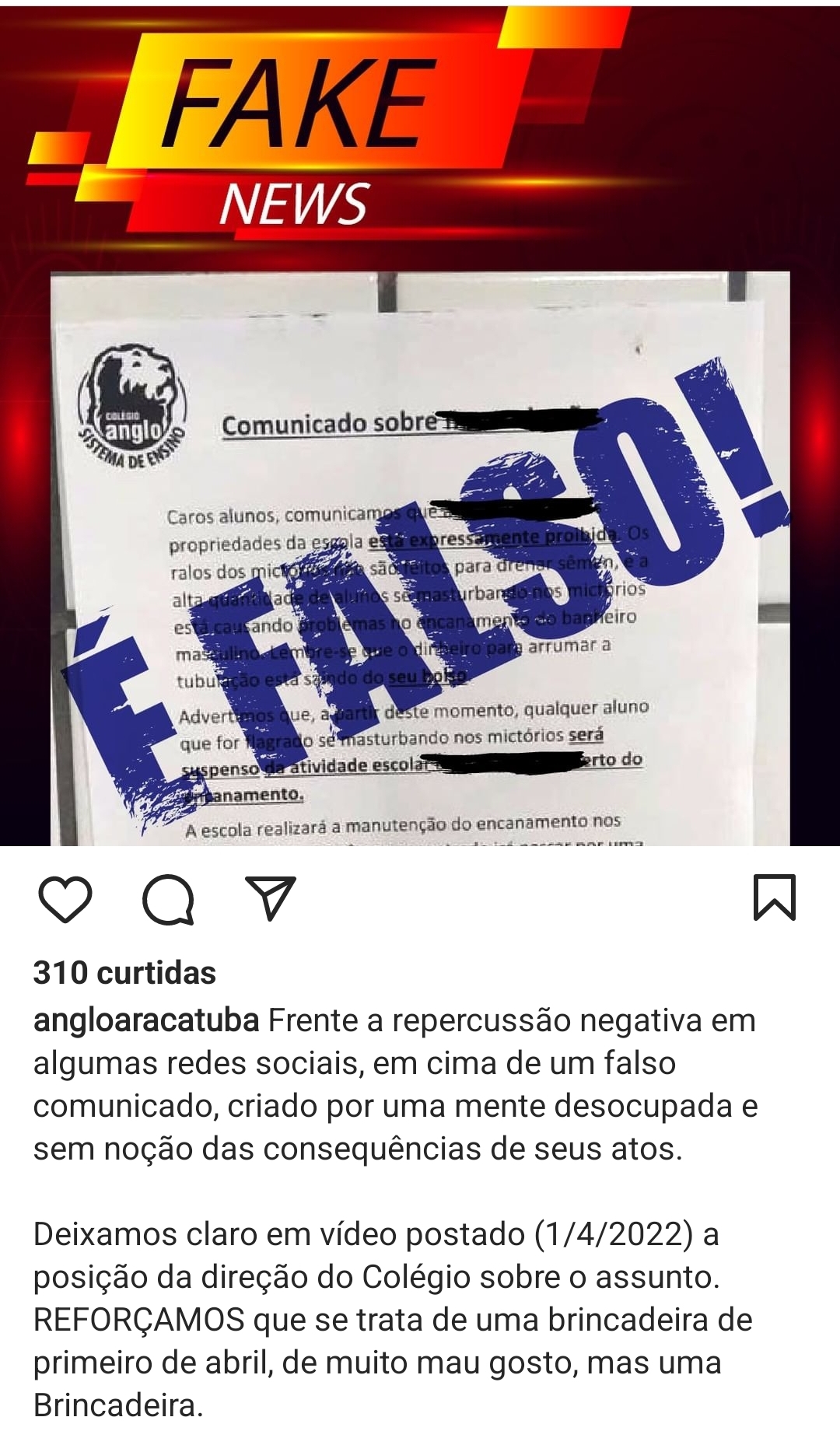 No dia 04 de abril de 2022, a escola também fez um comunicado no seu perfil do Instagram negando o ocorrido: