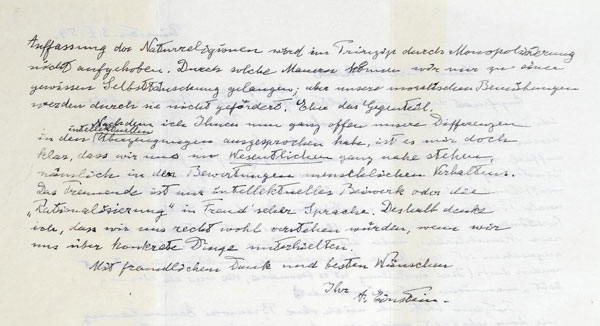 Foi, é claro, uma mentira o que você leu sobre minhas convicções religiosas, uma mentira que está sendo sistematicamente repetida. Eu não acredito em um Deus pessoal e nunca neguei isso[…]. Se há algo em mim que pode ser chamado de religioso então é a admiração ilimitada pela estrutura do mundo tanto quanto a nossa ciência pode revelar”.