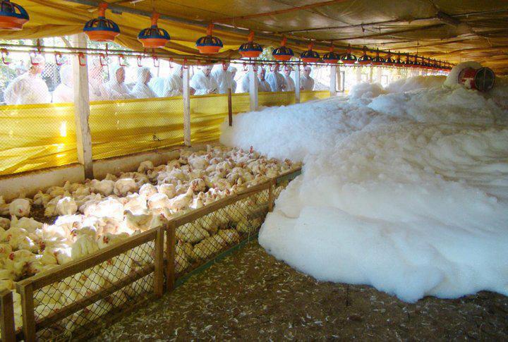 De fato, a tal espuma existe! Mas os frangos abatidos não vão para a panela.