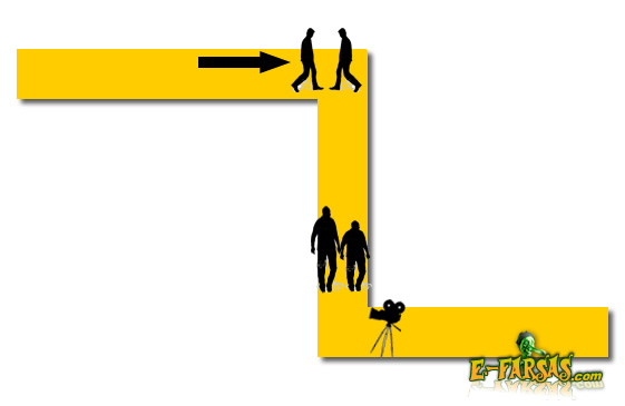 No corredor, antes do “fantasma” aparecer, o cinegrafista fica com a câmera na “esquina”, deixando apenas o apresentador enquadrado.