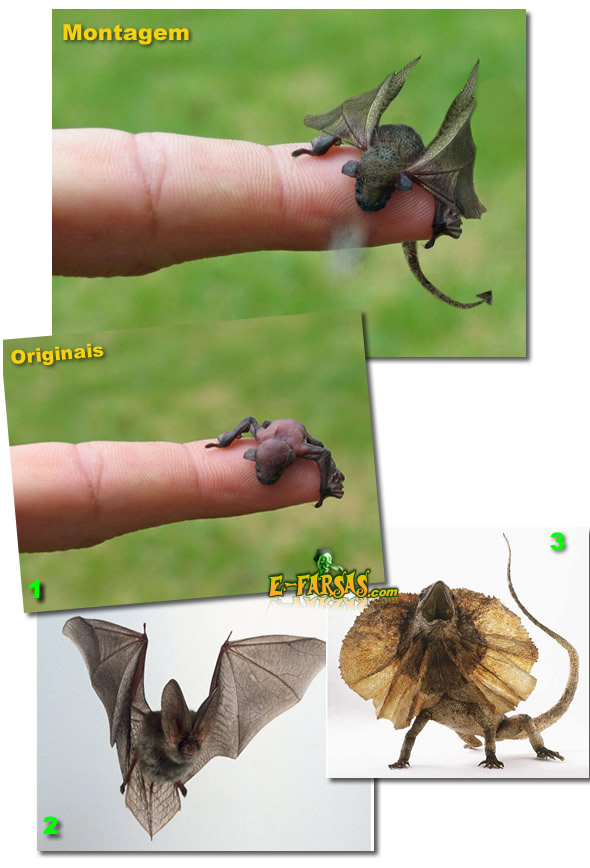 O minidragão da foto não é real! Ele é fruto de uma ótima manipulação digital, da junção de várias imagens.