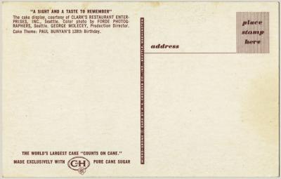 A extravagância foi encomendada pelo Restaurante Clark Enterprises e exposta na Feira Mundial de Seattle de 1962 para comemorar o aniversário de 128 anos do lenhador Paul Bunyan – personagem que faz parte do folclore norte-americano.