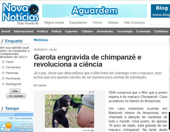 Na verdade, essa notícia foi inventada pelo site de humor G17 e publicada no dia 25 de junho de 2011. O slogan do G17 é “O portal de humor sem compromisso com a verdade!”.