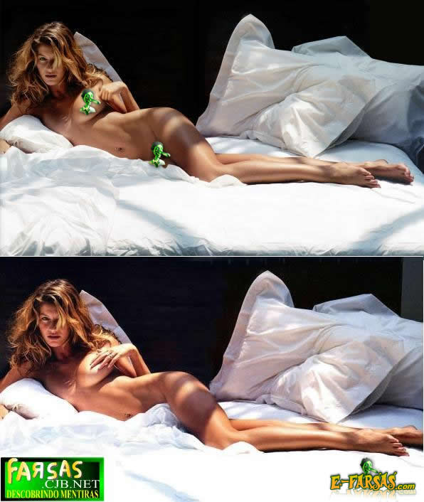 Foto montada que circulou pela internet no começo de 2002. Uma montagem tão bem feita que parece real! Note que a mão da modelo foi habilmente redesenhada. O “artista” que fez essa montagem é conhecido apenas pelo apelido de “Jello”. Mandava fotos como essa por e-mail como se fossem reais!