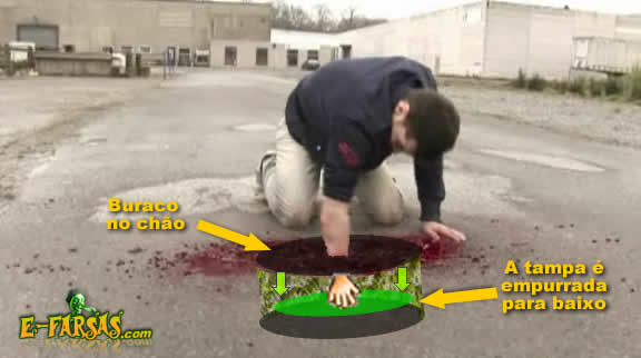 “Em frente onde o rapaz se ajoelha, há um buraco na rua, coberto por uma placa. Embaixo dela há um sistema hidráulico empurrando a placa para cima[…]. O ator só teve que empurrar aos poucos para baixo a placa para fazer com que seu braço desapareça gradualmente no buraco. E então veio a parte divertida: adicionando o sangue e os pedaços de pele, músculo e osso em 3d [com ajuda de computação gráfica]. Estamos muito felizes (e nojo) com o resultado. Obrigado a Nozon pela a produção.”