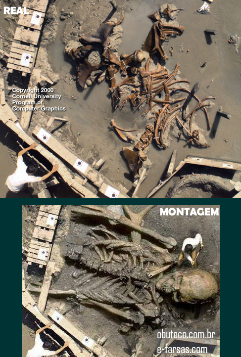 A imagem é falsa e foi criada por usuários do site Worth1000, que é especializado em montagens no Photoshop e o esqueleto não tem nada de gigante.