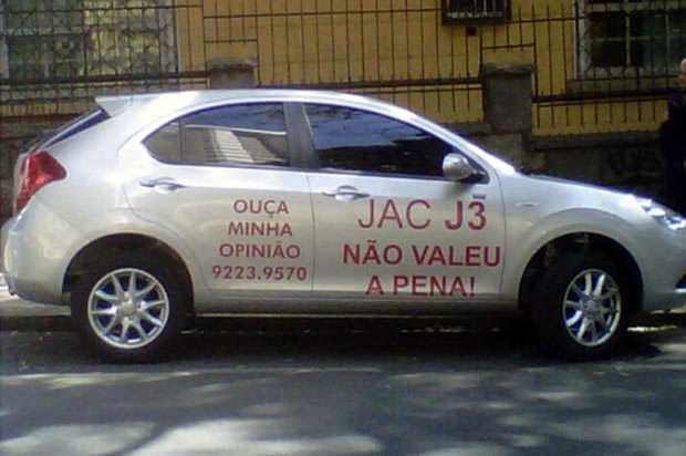 Em e-mail que circula há um tempinho, proprietário de um automóvel da JAC Motors reclama da qualidade do veículo e acaba pichando o próprio carro. Será verdade?