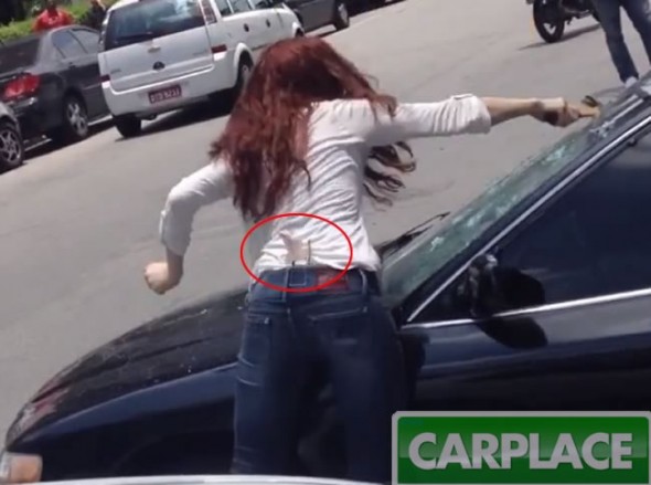 Mulher que estragou o carro na Vila Olímpia é uma atriz e estava com ponto eletrônico! (foto: Reprodução: YouTube com ampliação feita pelo Carplace)