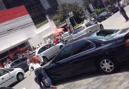 Mulher enfurecida destrói um Honda na Vila Olímpia!