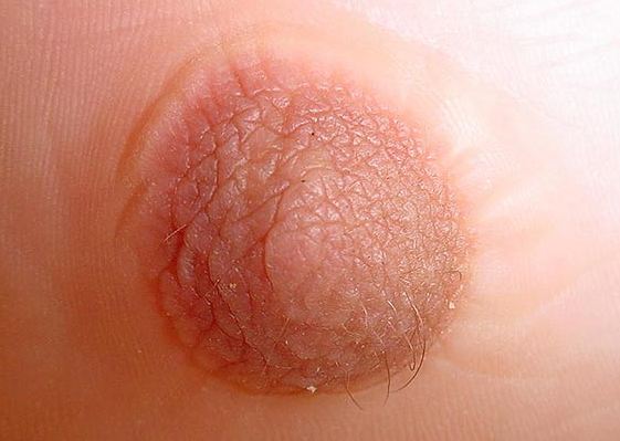 Um exame mostrou que a garota possuía um mamilo bem formado cercado por aréola e até com alguns fios de cabelo no pé. Um tecido adiposo foi formado na base da lesão, mas nenhum tecido glandular foi encontrado.
