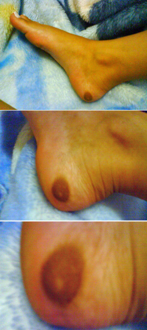 Mulher tem um terceiro mamilo na sola do pé!