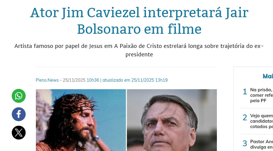 Ainda, segundo o que diz a alegação, o ator Jim Caviezel já estaria confirmado no papel principal, interpretando Jair Bolsonaro, além da produção contar com outros grandes nomes de Hollywood, como o ator Eddie Finlay – que supostamente viverá o deputado federal Eduardo Bolsonaro na película!