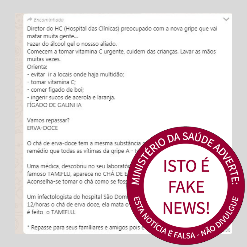 Quem inventou essa história sequer teve uma ideia original. Em janeiro de 2019, o Ministério da Saúde já havia desmentido uma fake news semelhante, com a diferença de que na ocasião o texto que se espalhou falava sobre a possível cura da gripe H1N1: