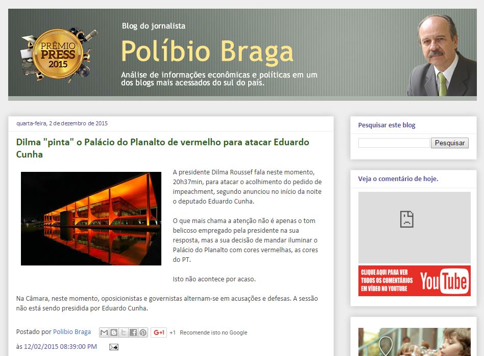 O jornalista político Políbio Braga acabou publicando também essa mesma matéria em seu blog, no dia 02 de dezembro de 2015: