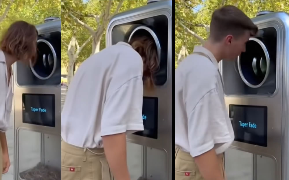 As imagens começaram a se espalhar nas redes sociais na segunda semana de novembro de 2025 e mostram algumas pessoas utilizando uma máquina instalada em uma rua movimentada que, aparentemente, corta cabelos numa velocidade incrível e com extrema exatidão.