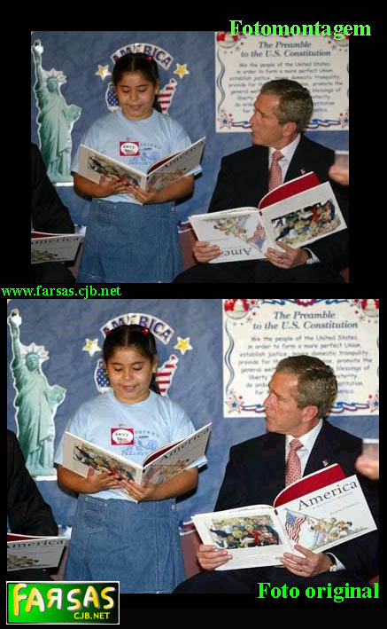 A foto abaixo me chegou por e-mail. O presidente dos Estados Unidos da América segura um livro de cabeça pra baixo. Até colocamos essa foto no nosso site de humor. Depois, dias mais tarde, no site do Governador do Texas, Rick Perry, encontramos a foto original.