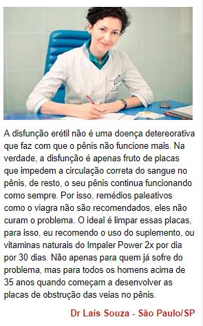 Outra suposta doutora que teria dado depoimento no site sobre os milagres do “viagra natural” se chama (segundo o site) doutora Laís Souza. A doutora (que não teve o CRM divulgado) ainda recomenda que o suplemento (que era chamado de “remédio” no começo do texto) seja tomado não só por pacientes com problemas de disfunção erétil, mas também por homens acima dos 35 anos de idade “para prevenção”.