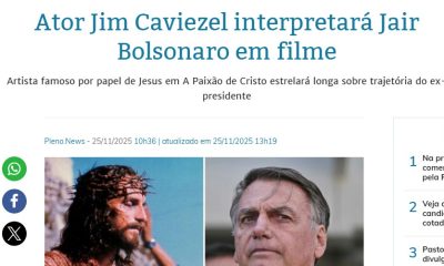 O ator Jim Caviezel vai interpretar Jair Bolsonaro no filme ‘Dark Horse’?