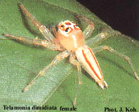Procurando por “Telamonia dimidiata” no Google, acabamos caindo na Wikipedia que, na sua versão em português, apenas diz que: