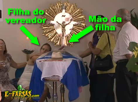 A filha do político permaneceu ao lado do corpo do finado o tempo todo e naquele exato momento (aos 24 segundos), a moça passa a mão na parte de trás do caixão, dando a impressão de que seria a cabeça do morto que havia se levantado.
